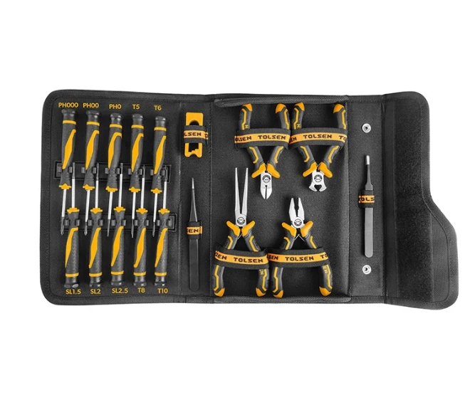 1pc Mini Combination Pliers 4.5″, 1pc Mini Diagonal Cutting Pliers 4.5″, 1pc Mini End Cutting Piner 4.5″, 1pc Mini Needle Nose Pliers 5.5″, 10pcs Precision Screwdriver Set, 1pc Screwdriver Magnetizer, 1pc Stainless Steel Anti-static Tweezer, 1pc Stainless Steel Anti-static Flat Tweezer